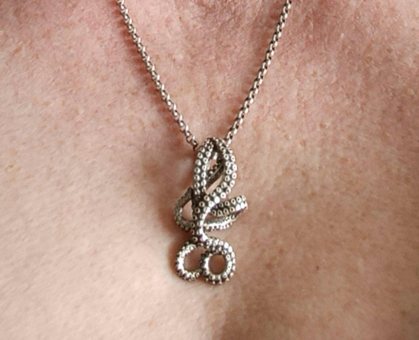 Zwei schöne Schmuckstücke. Ich finde, dass die Kette im Verhältnis zum Anhänger zu filigran ist. Hätte mir die Krake gern mit einer anderen Kette gekauft- gehörte aber zusammen.