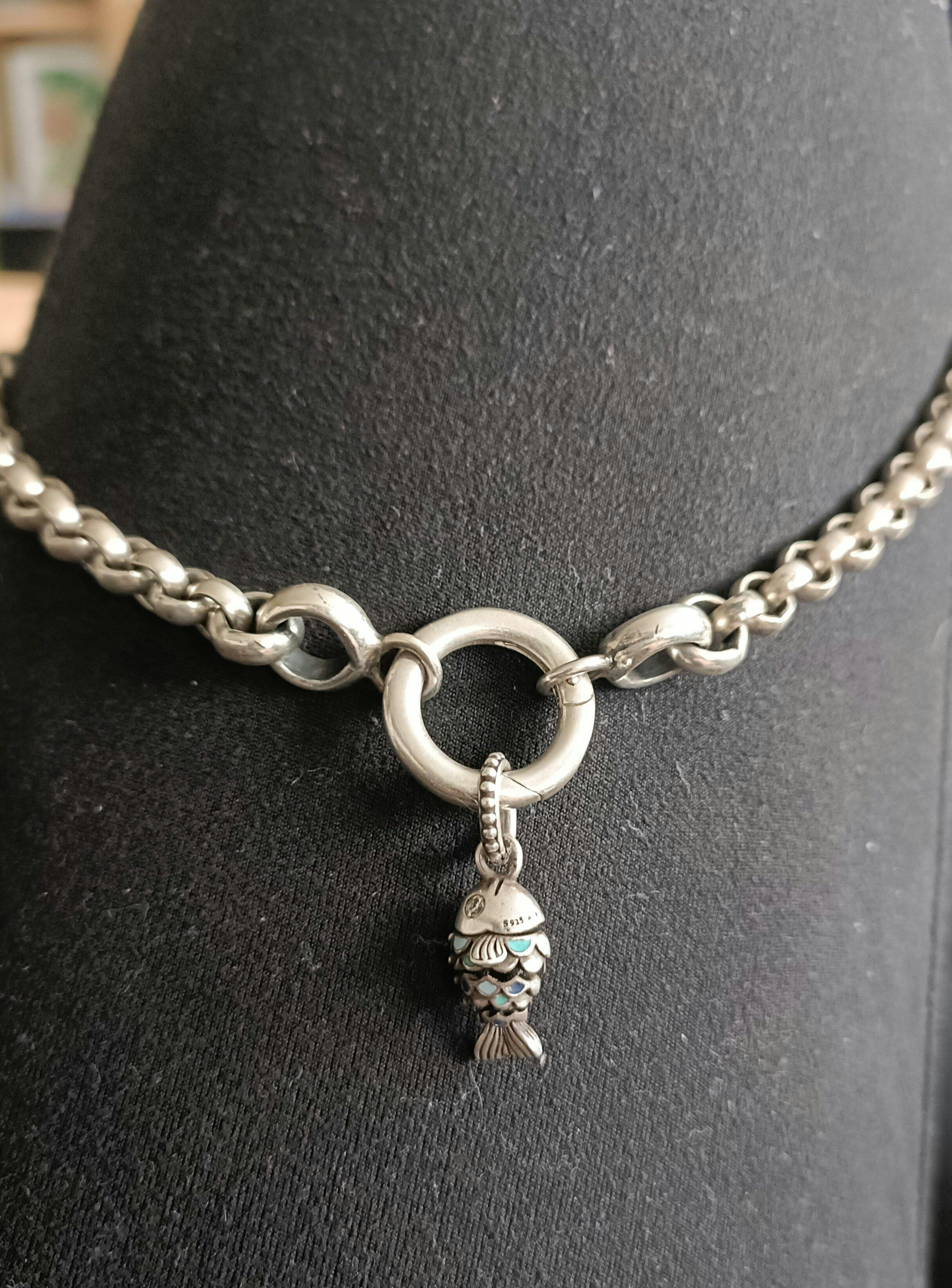 Tolles Schmuckstück, das man mit den verschiedensten Anhängern kombinieren kann- hier ein Fisch, aber auch pur sehr dekorativ ist.