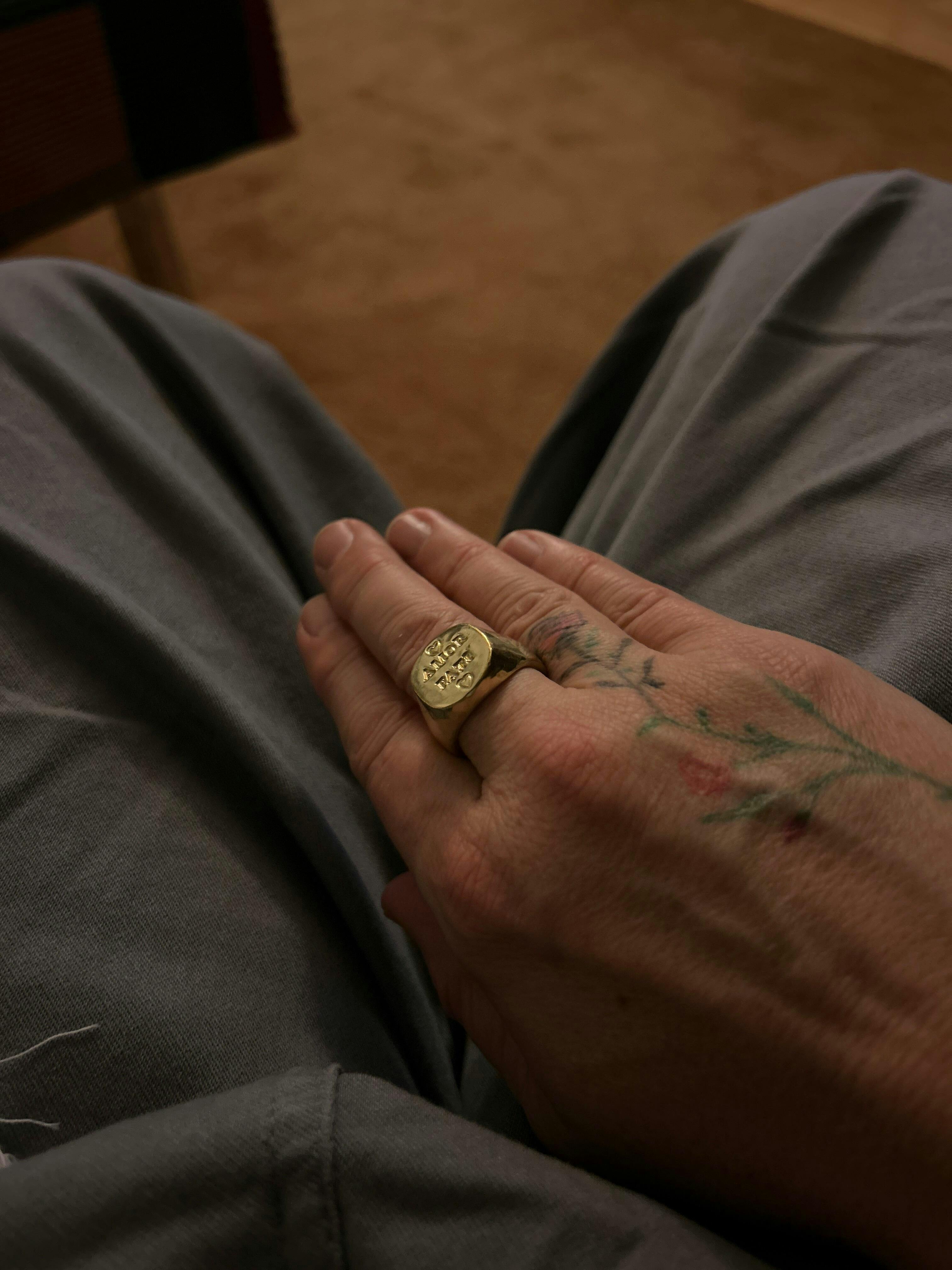 Der Ring ist sehr angenehm zu tragen. Die Farbe wirkte sehr warm und passt perfekt zu den silbernen Ringen. Ich würde ihn immer wieder kaufen.